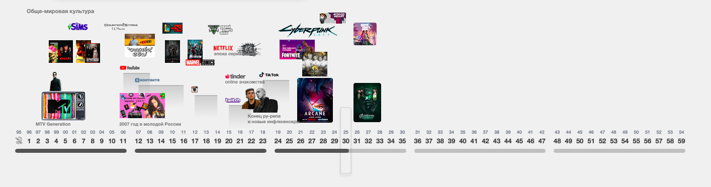 Зафиксируйте для себя культурный опыт который развивался одновременно с вашим взрослением и отслеживайте будущие тенденции в развитии нашего общества, знакомьтесь с тем, что еще неизведано вашим вниманием и о чем разговаривают все вокруг